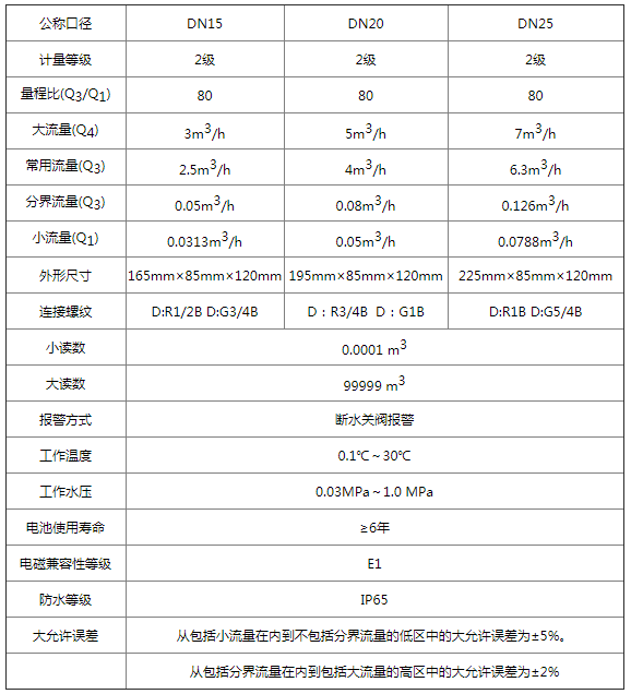7、水表采用微功耗电路设计,整机功耗低,低功耗≤4μA,电池采用3.6V、3.2A高性能锂电池,电池使用寿命在6年以上。